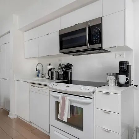 Eine voll ausgestattete Küche verfügt über alle modernen Einrichtungen, darunter ein Herd und ein Geschirrspüler. Die Bushaltestelle Fleet Street befindet sich auch in der Nähe, und zwar ungefähr 10 Fußminuten vom Apartment Modern Cityplace Sky Home 2Br 2Ba & Balcony entfernt.